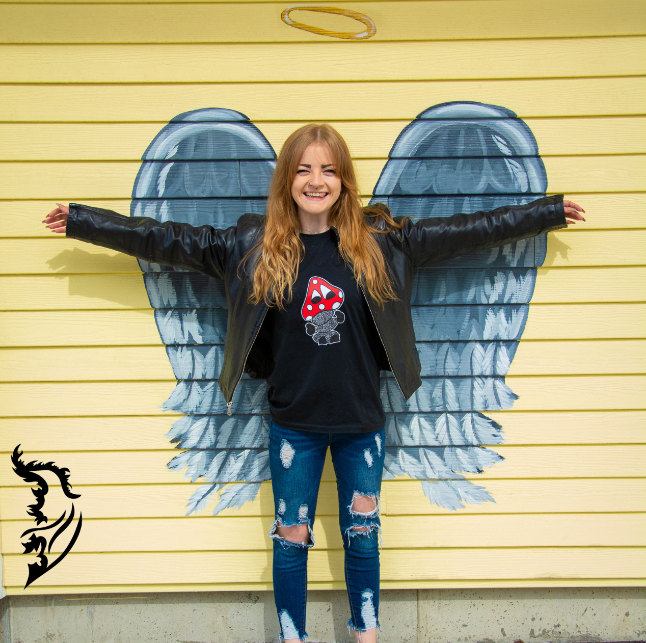 Black T-Shirt with Fun Guy design on front. Logo on back right bottom of shirt.