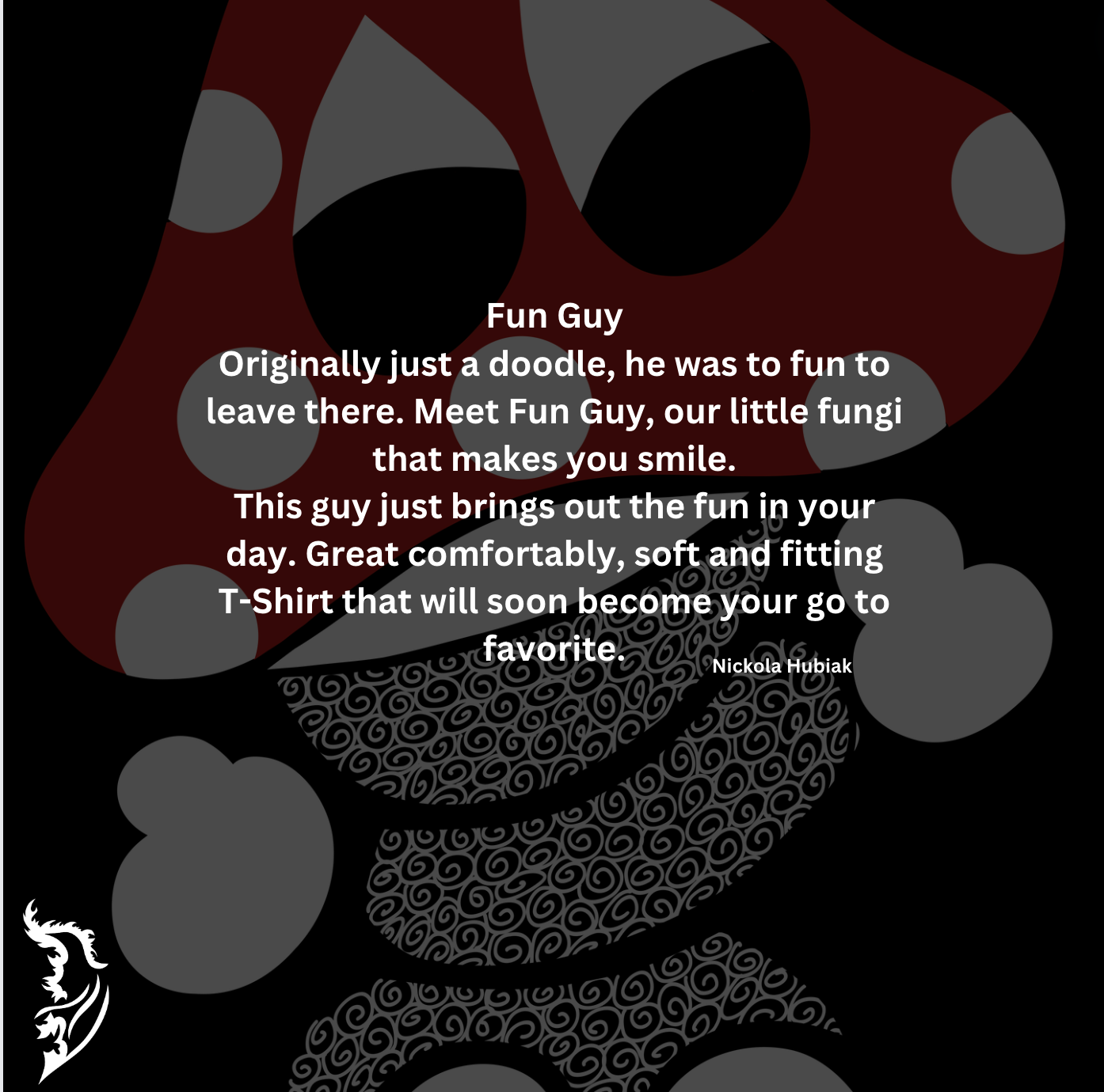 Originally just a doodle, he was to fun to leave there. Meet Fun Guy, our little fungi that makes you smile.