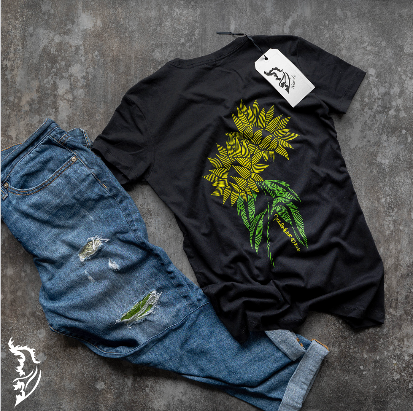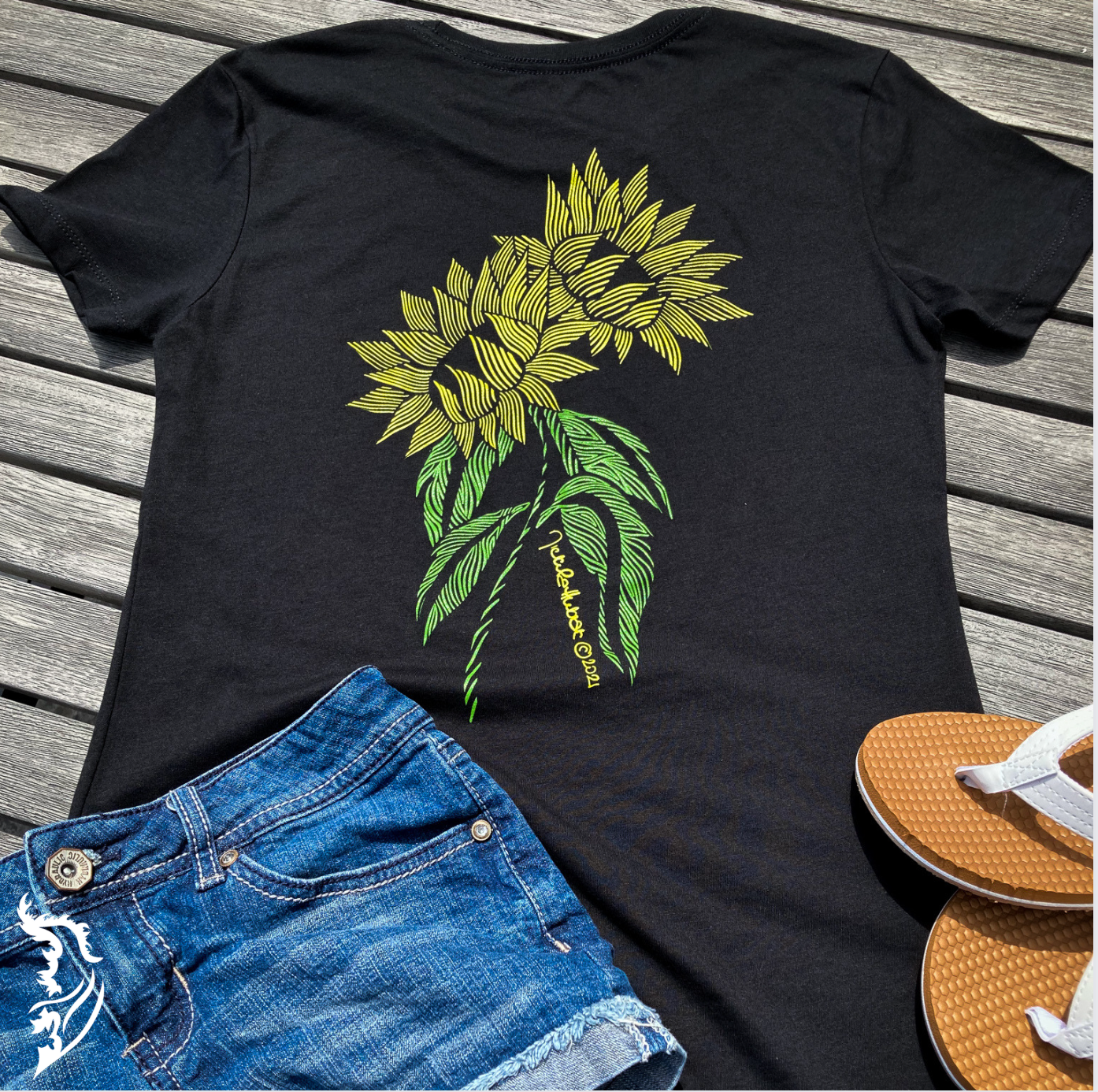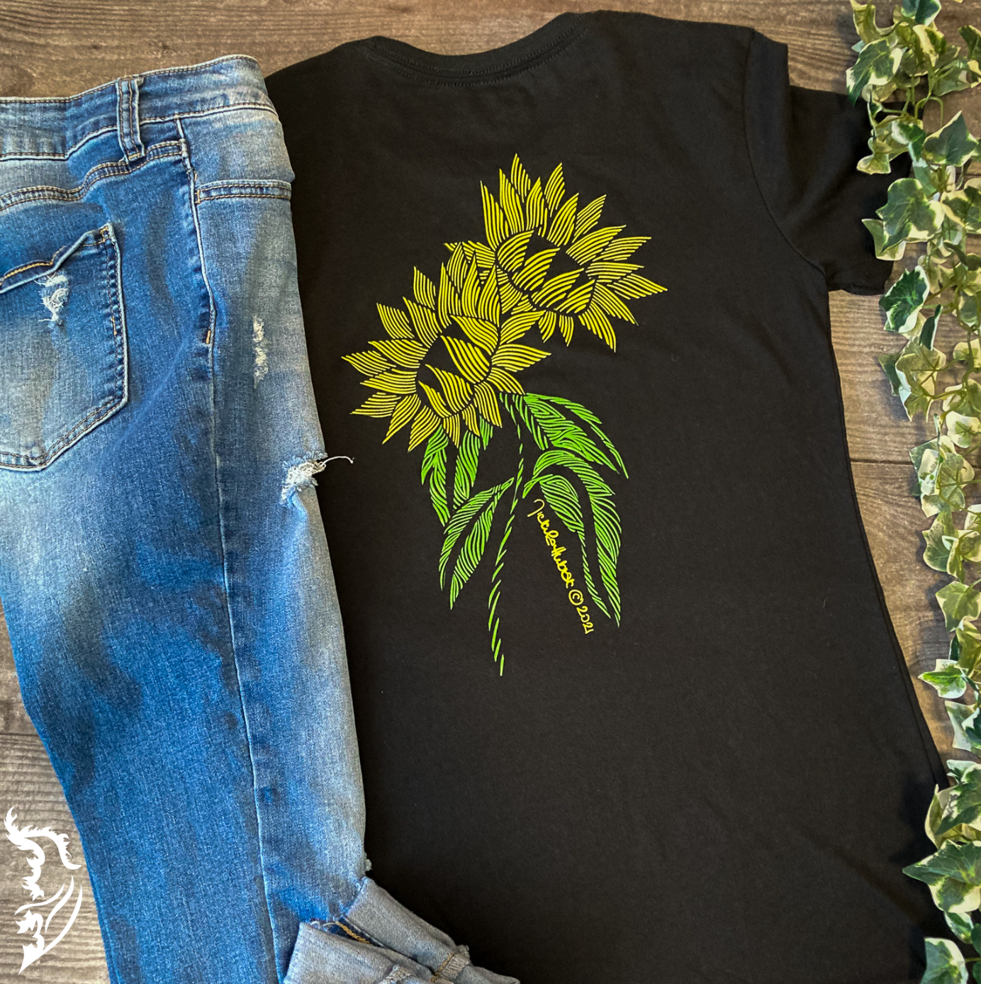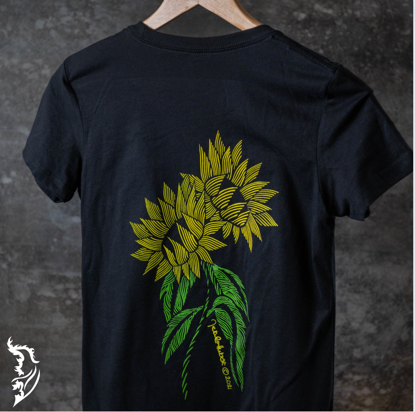 Sunflower (Black) Hand-drawn T-Shirt | Ladies