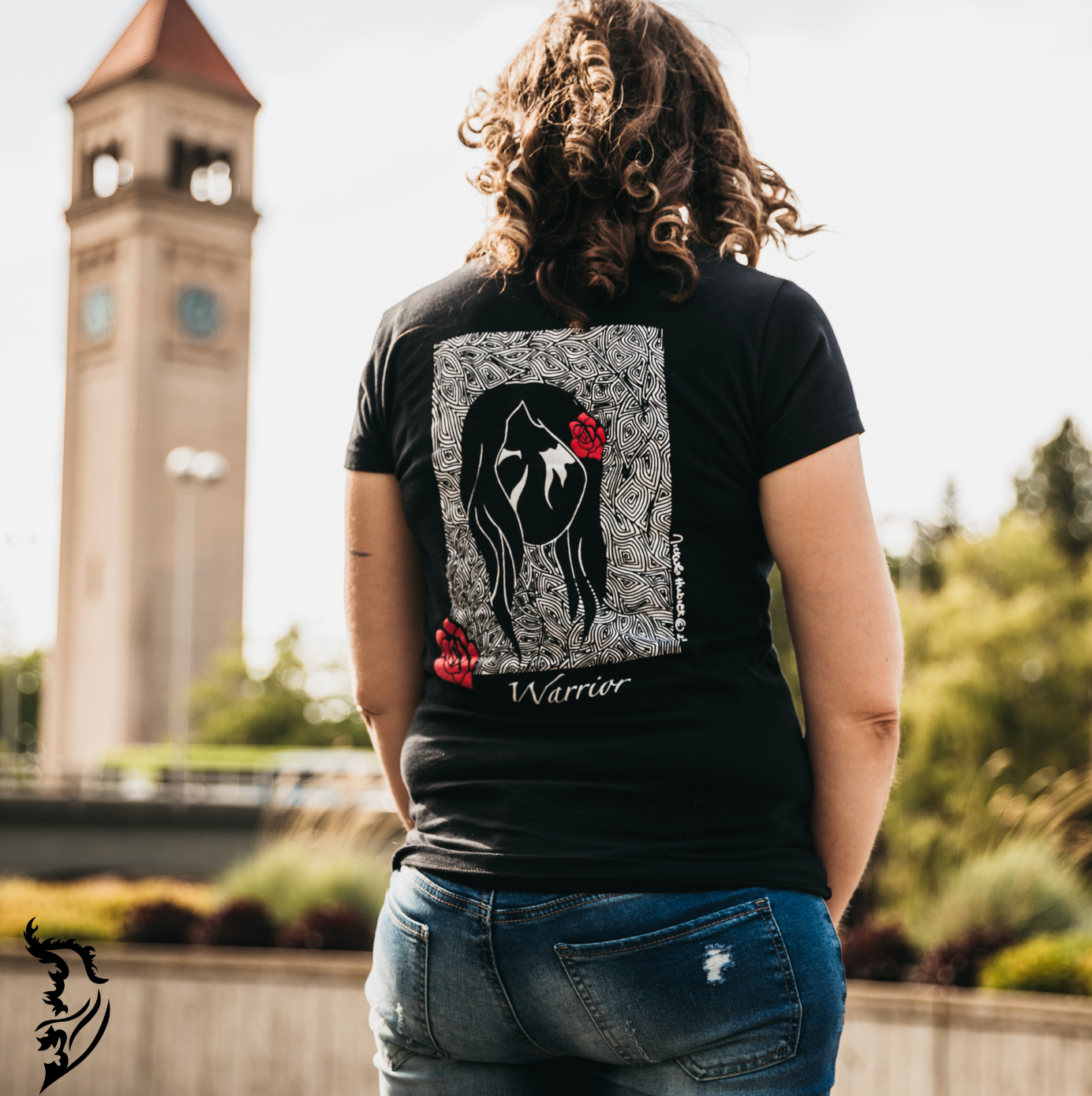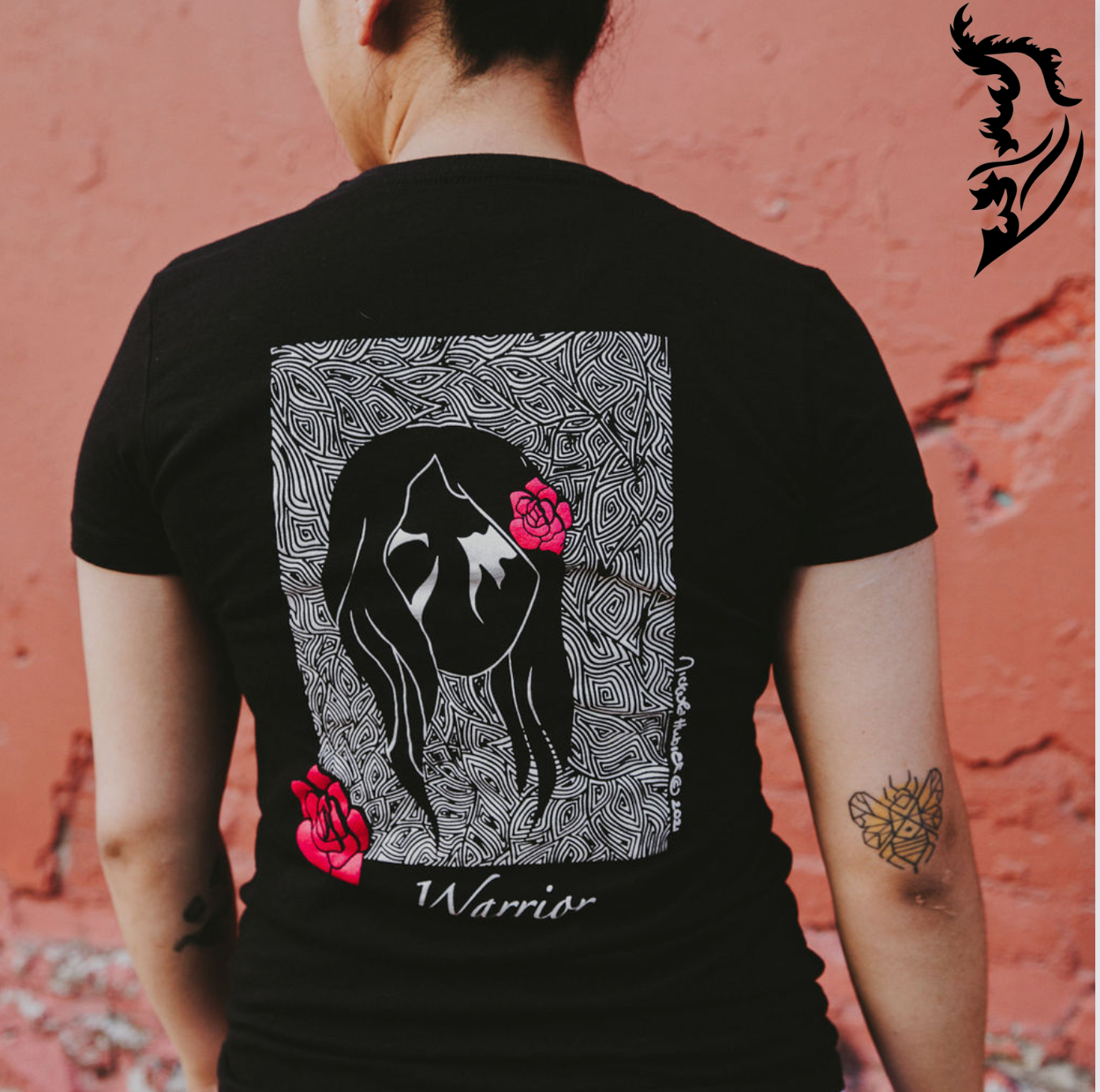 With this empowering T-Shirt, you can proclaim your strength and power to the world. The soft black fabric and comfortable fit will make you feel beautiful and confident, while the hand-drawn design reminds you that you are not a victim, but a warrior.